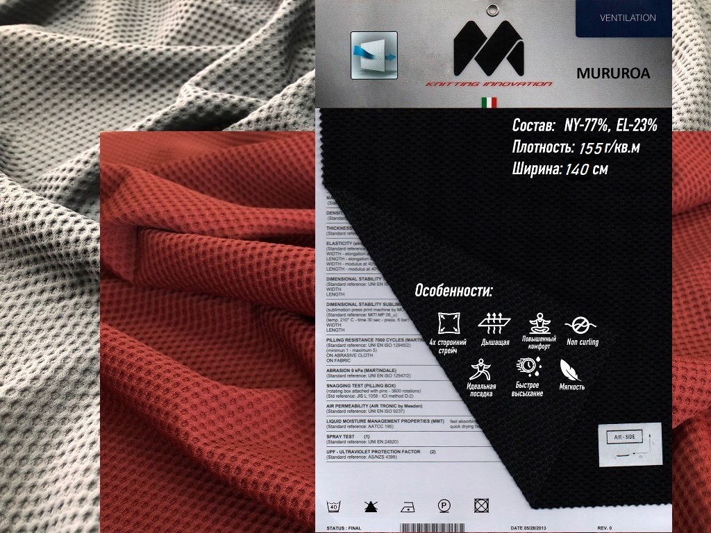 Поглощает запах, гладкий, мягкий, дышащий, влаговыводящий. Антипиллинг, защита от УФ.