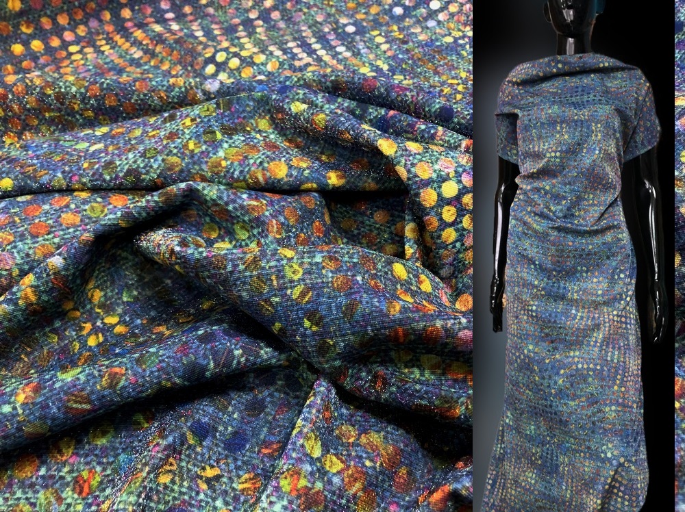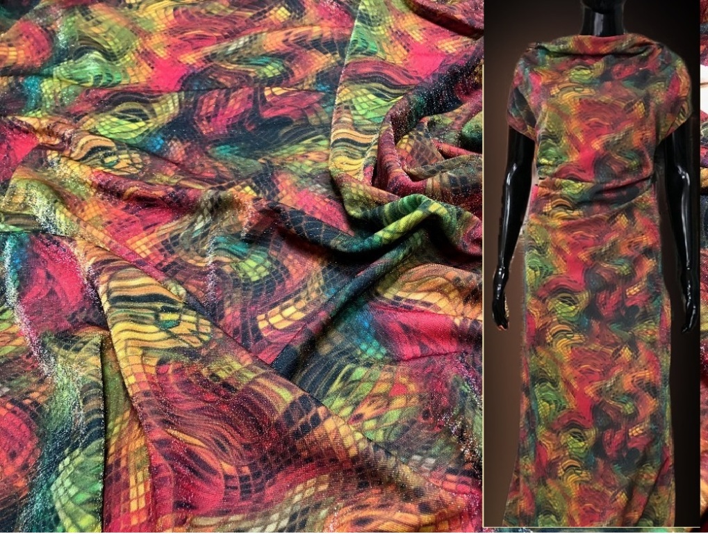 Плательный трикотаж джерси с люрексовой нитью.
