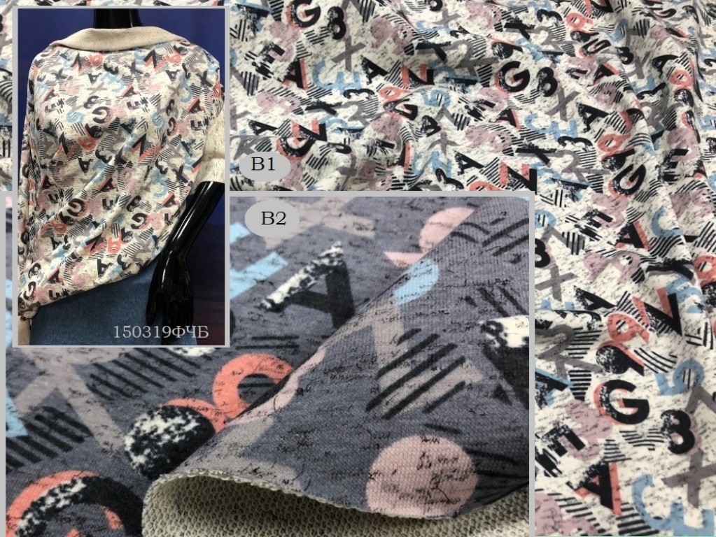 Футер 3нитка Пенье Меланж ЧБ ПРИНТ 65со30пл5еа ш.155 305г/мт2 980р/мт