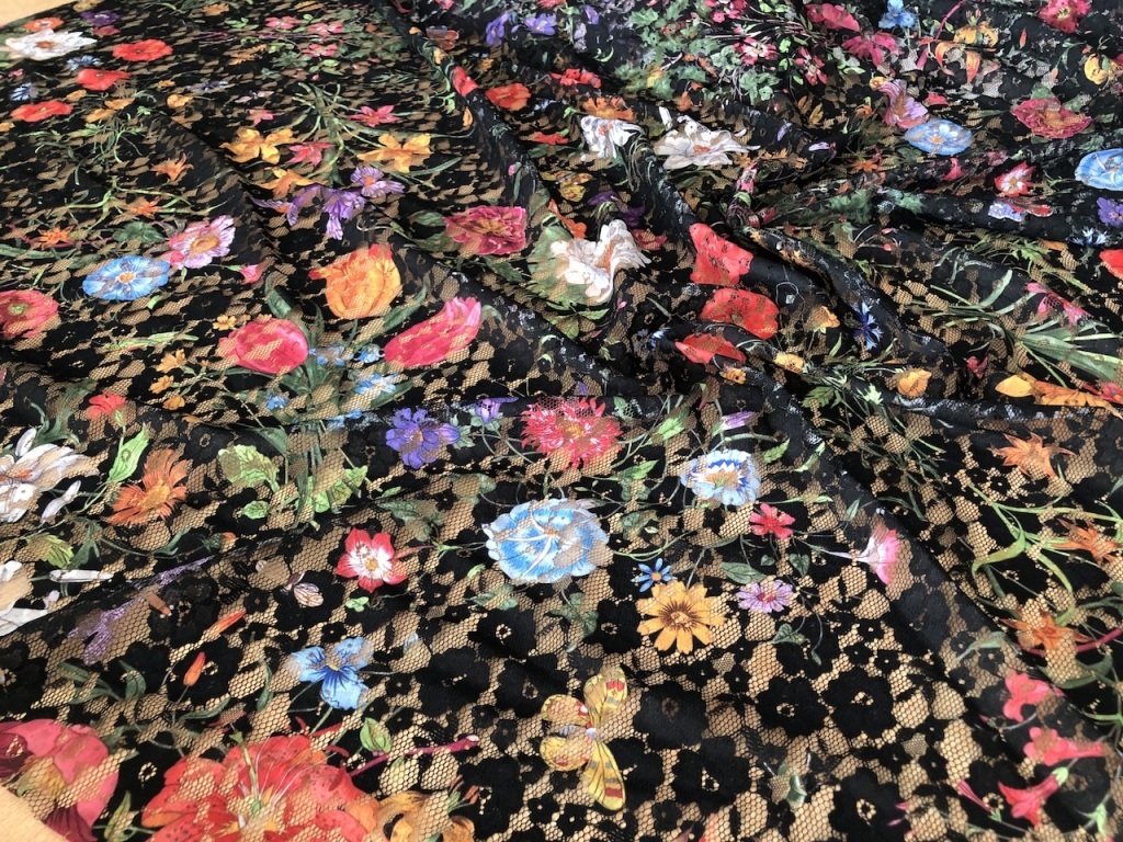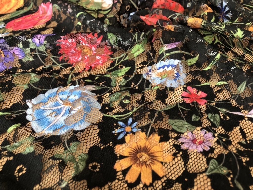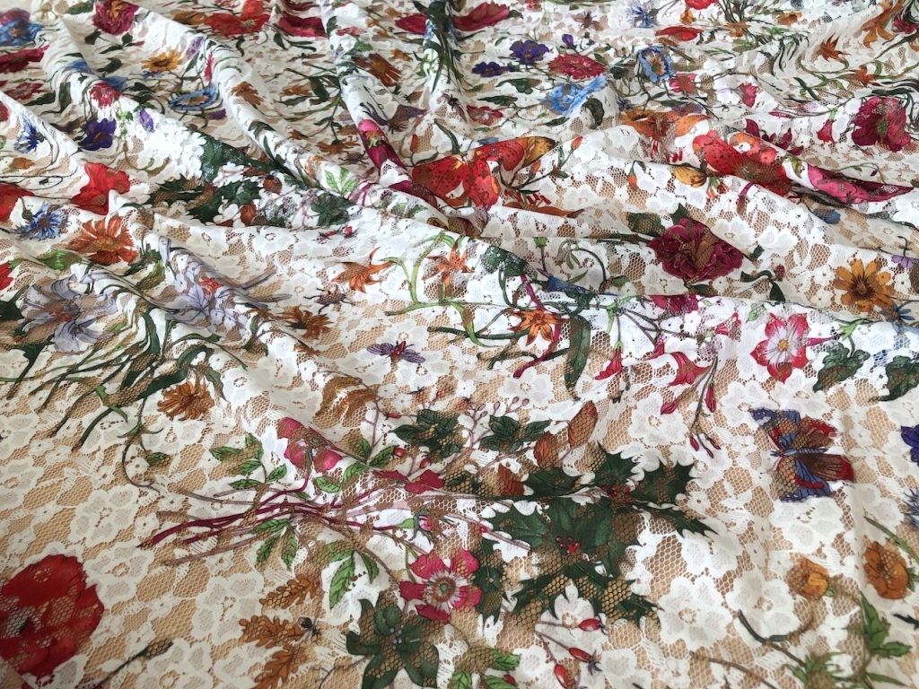 Итальянский базовый Гипюр, принт КАРОТЕХ, по мотивам коллекций GUCCI – цвета черный, молочный, Плотность 120г/мт2