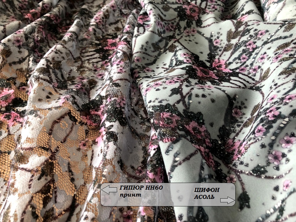 Гипюр НН60 принт. Плотность 120г/мт2. Шьем платья, блузки, юбки. Комбинируем с шифоном и шелком.