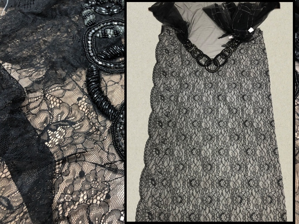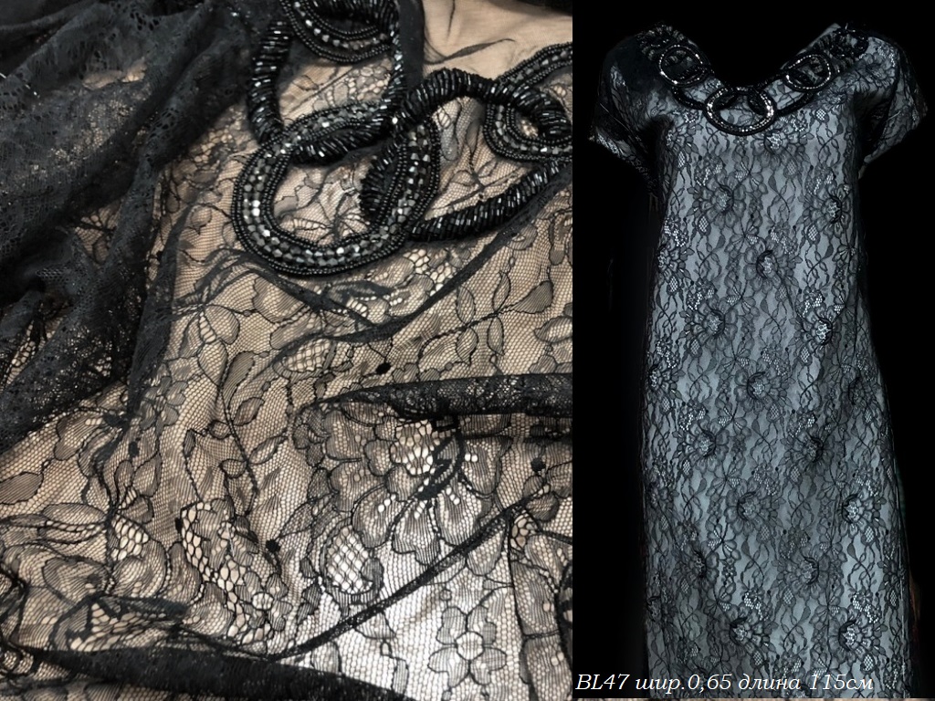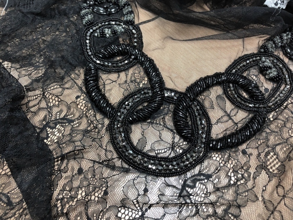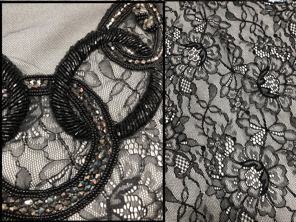 Вышивка бисером на гипюре Цвет черный. Ширина 65см, длина 115см