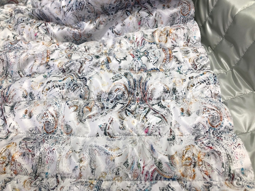 Утеплитель каротерм 100г/мт, стежка ч/з 5см. Плащевая принт 75г/мт2, однотонная плащевая Монклер 30г/мт2 цвет ментол