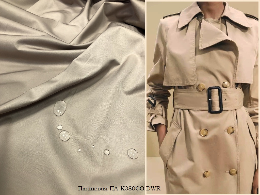 Плащевая холодного бежевого цвета с покрытием DWR Плотность 170-180г/мт2
