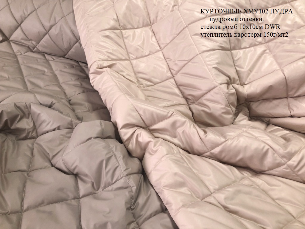 Курточные ткани в пудровых оттенках , утеплитель каротерм150г/мт2 ,Стежка ромб 10х10 Плащевая 75г/мт2