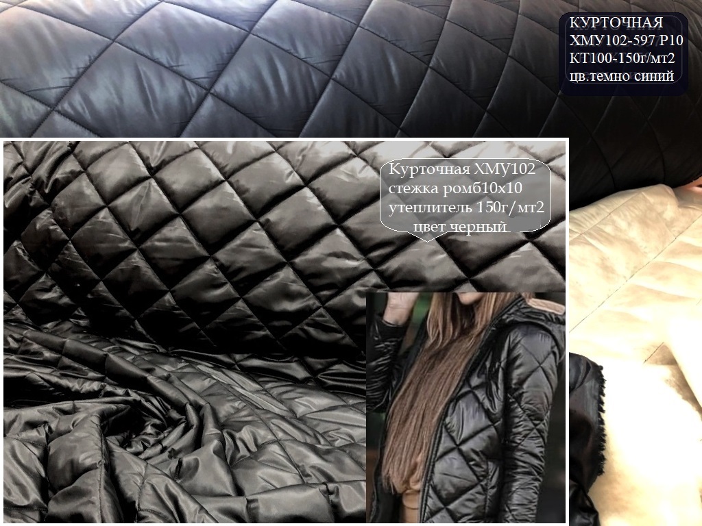 Курточные черного и синего цвета на трикотажном подкладе. Стежка ромб 5х5см, утеплитель синтепон 60г/мт2