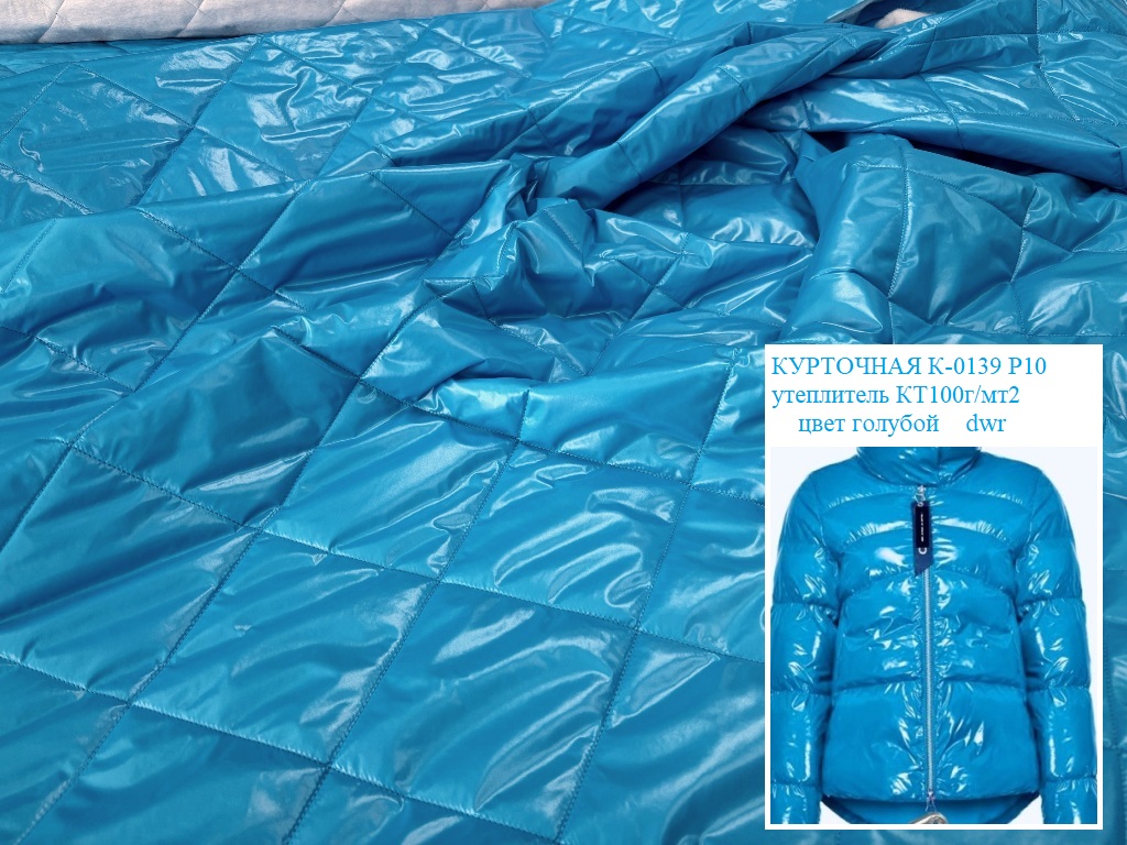 Курточная ткань бирюзового цвета, Плащевка плотностью 75г/мт2 ,утеплитель синтепон 100Г/мт2, стежка ромб 4,5х4,5см, покрытие DWR