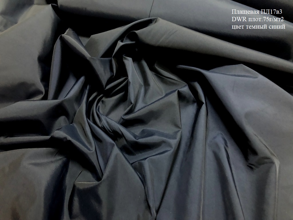 Плащевые ткани темно синего цвета с покрытием DWR в трех вариантах.