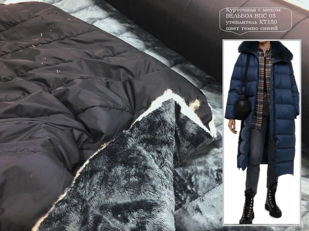 Курточная с мехом Вельбоа утеплитель каротерм 150г/мт2 , шаг стежки 12,5см