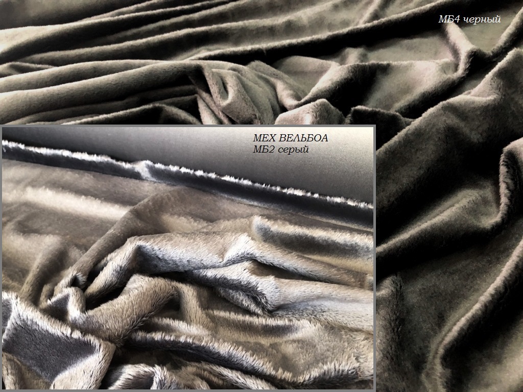 Мягкий пластичный мех на трикотажной основе. Цвета серый, черный.