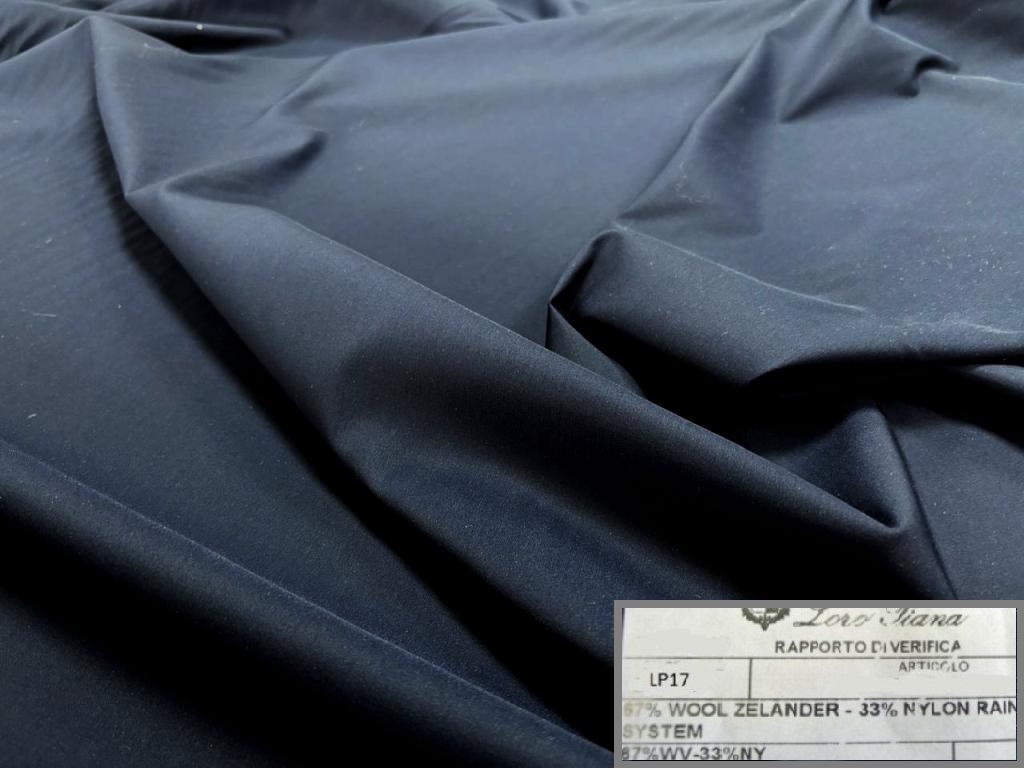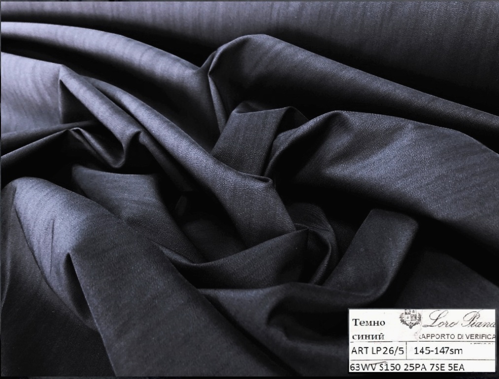 Легкая костюмная ткань темно синего цвета. Изделия из материалов Loro Piana отличаются такими преимуществами, как: износостойкость, устойчивость к заломам, высокие теплоизоляционные характеристики. оптимальный комфорт.