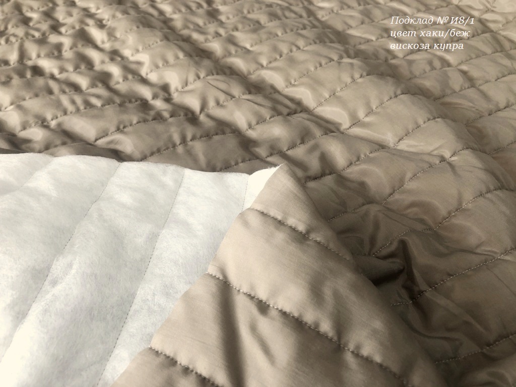 Подклад стеганный вискоза купра в двух цветах . Утеплитель каротерм 60г/мт, стежка ч/з 5см. между подкладом и утеплителем вставлен спанбонд.