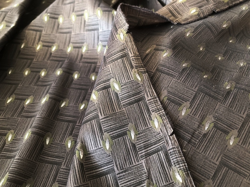 Тонкий стрейч подклад с принтованный рисунком в серых тонах.