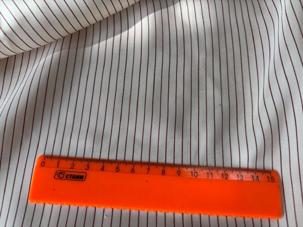Подклад сливочного цвета в бордовую полоску .