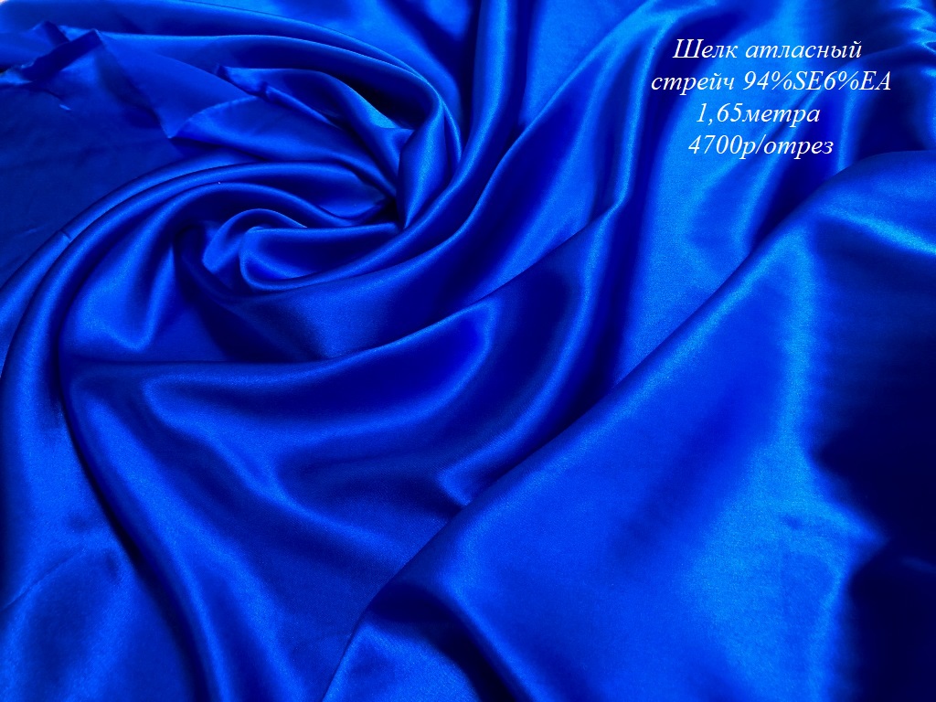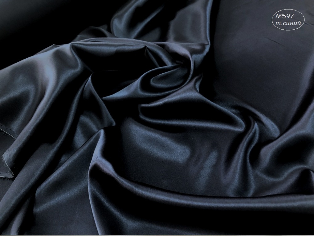 Отрез натурального шелка атлас стрейч по сниженной цене. Цвет темно-синий