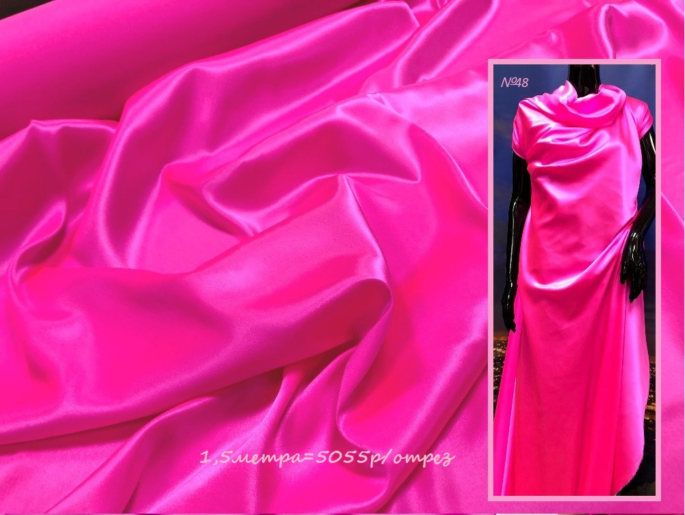 Отрез натурального шелка атлас стрейч по сниженной цене. Цвет ярко-розовый.