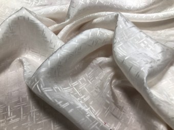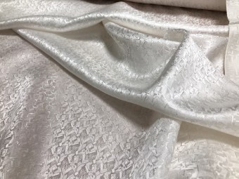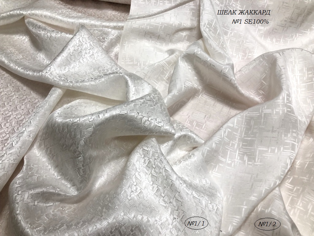 Жаккардовый двухсторонний шелк молочного цвета в двух вариантах. У шелка слабая сминаемость, Плотность 70г/мт2