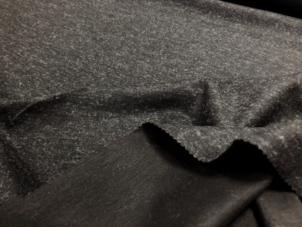 Трикотаж джерси ПунтоМилано стрейч цвет черный меланж , на платья, брюки-юбки. слабая сминаемость.