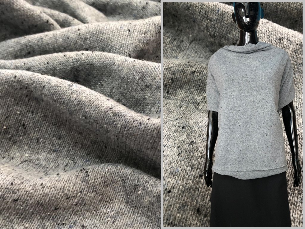 Мягкий шерстяной трикотаж , цвет серый меланж .Шьем платья, водолазки.