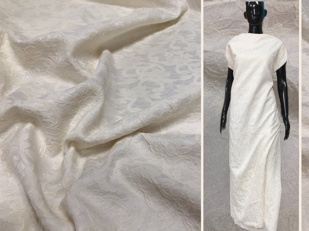 Мягкий плательно костюмный жаккард молочного цвета.