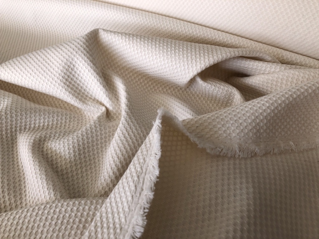 Плательно-костюмный жаккард стрейч сливочного цвета. Мягкий. пластичный, слабая сминаемость.